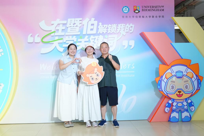 暨南大学伯明翰大学联合学院以“在暨伯解锁我的大学关键词”为主题设计迎新背景板。新生们通过转动转盘,选定自己大学阶段的关键词,开启对未来的展望。同时,还为新生送上大礼包,内有院服、领带领结、笔记本、卡套、小风扇、晴雨伞等,承载了学院对新生深切的关怀与美好的祝愿。