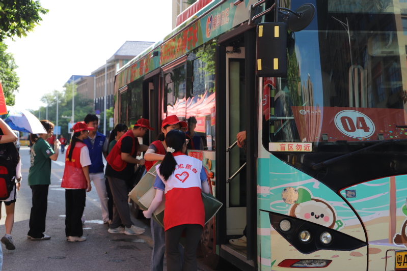 校园外,番禺校区积极协调属地相关部门开放周边道路及停车场,为自驾报到的新生家庭提供充足的停车空间;校园内,迎新接驳车穿梭不息,为新生及家长提供接送和行李运送服务,把便利与温暖送到每位暨南人身边。