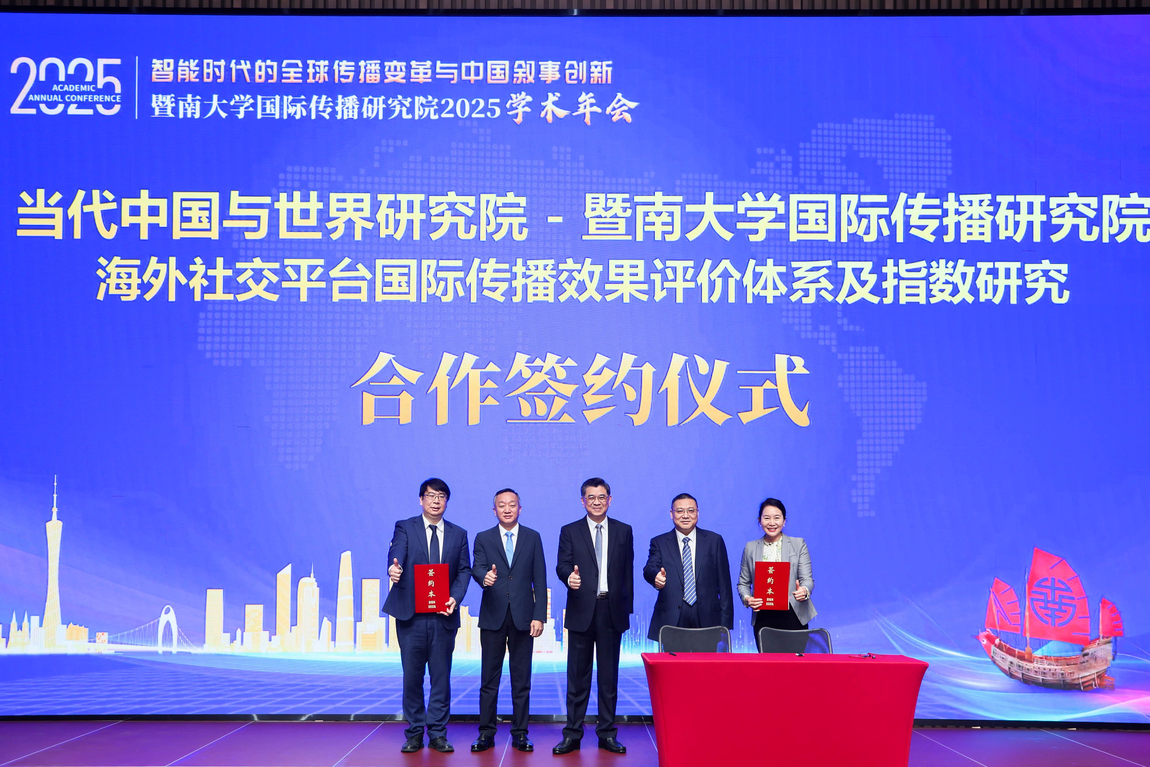 开幕式上,当代中国与世界研究院与暨南大学国际传播研究院举行了“海外社交平台国际传播成果评价体系及指数研究”合作签约仪式。该项目旨在构建一套科学、可量化的国际传播效果评估体系,为相关实践提供数据支持与决策参考。暨南大学国际传播研究院还发布了《暨南大学国际传播研究院项目招标公告》和《暨南大学国际传播研究院博士后招聘公告》。