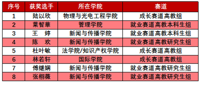 1月31日,第三届全国大学生职业规划大赛广东省分赛决赛在广州航海学院黄埔校区举行。我校8名选手满额入围成长赛道高教组、就业赛道高教本科生组和就业赛道高教研究生组三大赛道省决赛,获4金4银的优异成绩,各赛道均斩获金奖,金奖数量并列全省第一。
