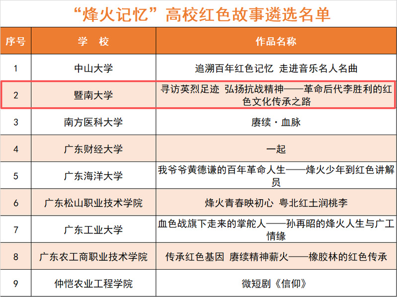 (广东省高校“烽火记忆”高校红色故事遴选名单)