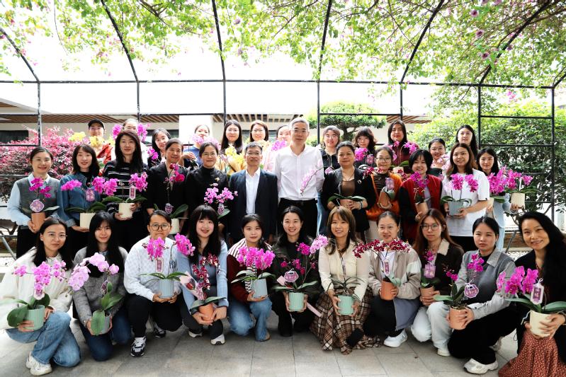 潘启亮代表校区管委会向女教职工们表达了节日的祝福,肯定了她们在各自岗位上发挥的骨干作用,并希望大家继续保持细腻、温暖的优势,以赤诚之心履职尽责,为校区发展添砖加瓦。